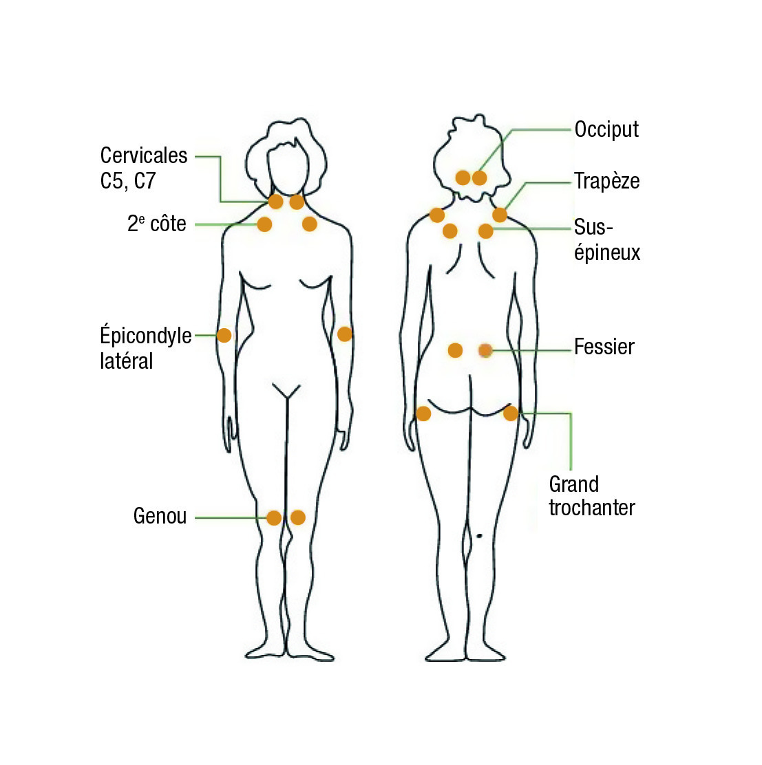 En 1990, l’American College of Rheuma-tology (ACR)a établi des critères diagnostiques relativement précis : algies diffuses de la région axiale résistant aux antalgiques habituels et persistant depuis plus de 3 mois, et douleurs à la palpation d’au moins 11 points sur 18 sites identifiés (