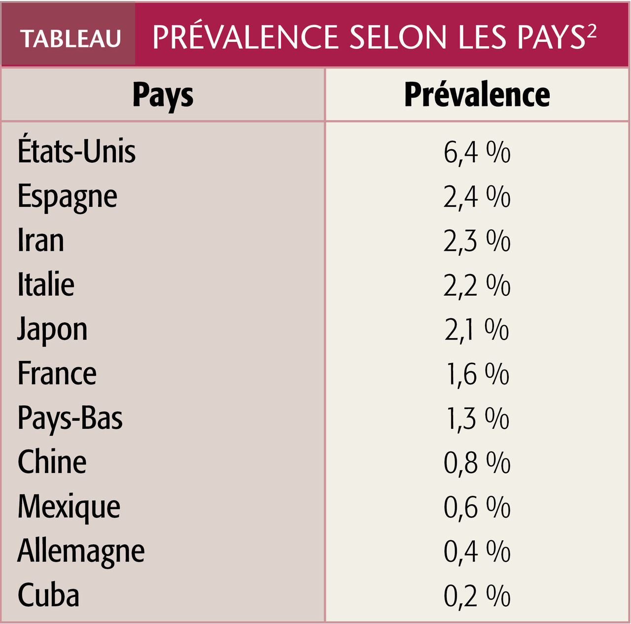 La prévalence est de 1-2 % de la population, avec des différences selon les pays (