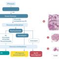 La cryobiopsie transbronchique est une alternative à la biopsie pulmonaire chirurgicale, qui permet d’obtenir, au cours d’une endoscopie bronchique sous anesthésie générale, des fragments pulmonaires compatibles avec les besoins de l’analyse anatomopathologique des pneumopathies interstitielles. Il s’agit d’une technique endoscopique lors de laquelle une cryosonde est introduite par le canal opérateur. Cette sonde permet de congeler les tissus avoisinants sur plusieurs millimètres en quelques secondes. Des fragments de poumon congelé de 5 mm d’arête au moins peuvent ainsi être obtenus, ce qui permet une analyse histologique représentative du parenchyme pulmonaire (fig. 2B, C, D ). Saignement endobronchique et pneumothorax sont les deux complications principales liées à cette technique, qui nécessite une équipe expérimentée en endoscopie interventionnelle. La mortalité est estimée à 0,5 % dans des séries récentes.