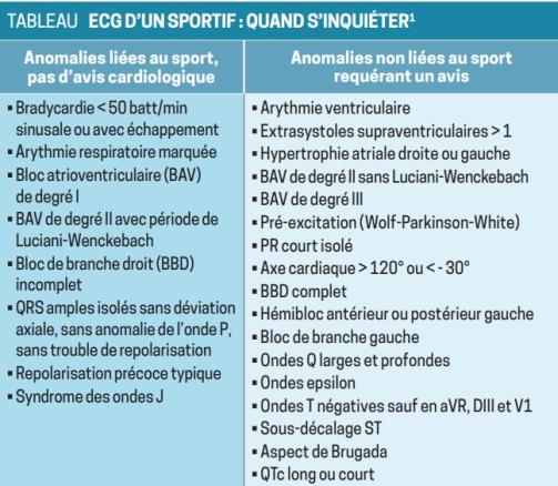 Chez le sportif, un certain nombre d’anomalies sont décrites (tableau).1