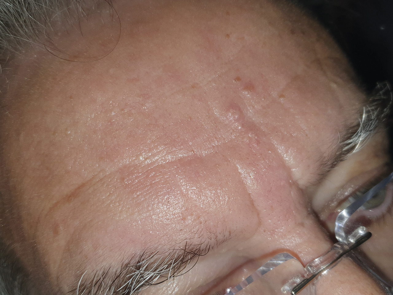 Simon, 78 ans, consulte car il a remarqué la présence de nombreuses formations sur son front (