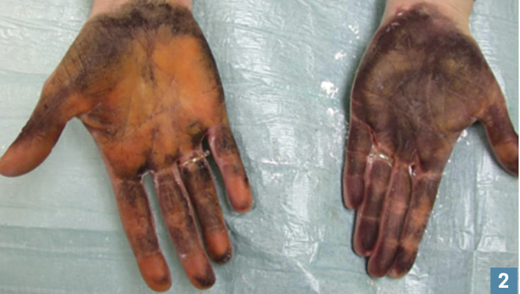 – mains et pieds sont exposés à un courant électrique continu transmis par immersion dans l’eau ;