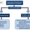 En l’absence de déficit en vitamine D native ou active (calcitriol) : évoquer un défaut d’absorption digestive du calcium (syndrome de grêle court sévère) ou une accrétion osseuse accrue de calcium.