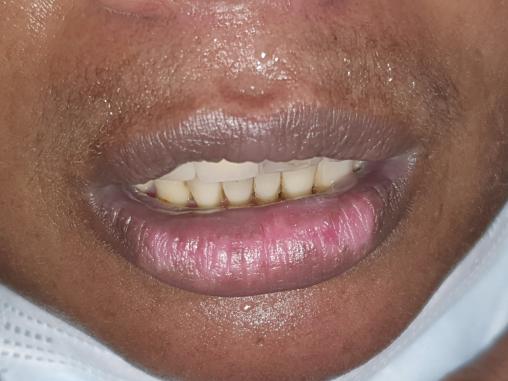 Marie-Madeleine, 42 ans, consulte car elle s’inquiète d’une hypochromie de sa lèvre inférieure (figure ).