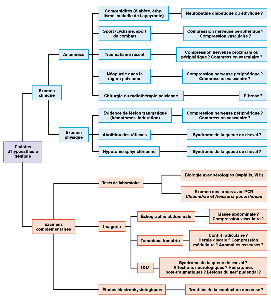 Lors de la prise en charge d’un patient se plaignant d’hypoesthésie génitale, l’objectif premier est d’éliminer les causes urgentes possibles (
