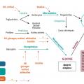 - de l’intégrité des voies métaboliques (système enzymatique) intervenant dans la glycogénogenèse, la glycogénolyse et la néoglucogenèse, ainsi que des voies métaboliques permettant la disponibilité des autres substrats énergétiques impliqués dans l’oxydation et le stockage. Le foie est le principal siège de ces différentes voies métaboliques, et son intégrité est essentielle dans l’homéostasie glucidique ;