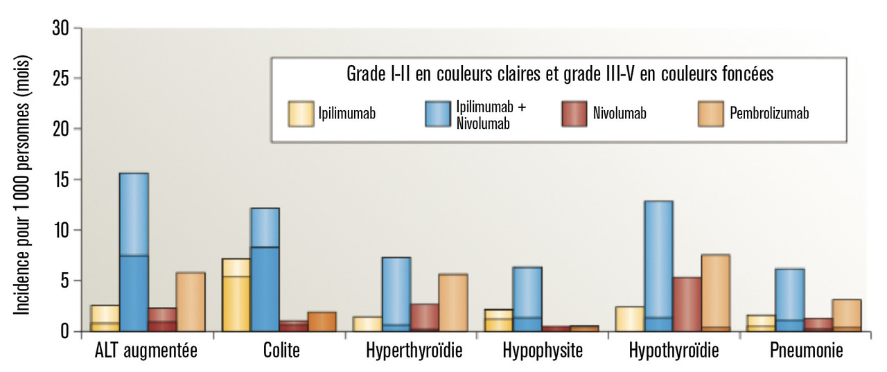 Lafigure 2 illustre l’incidence et l’intensité des effets secondaires immunomédiés.