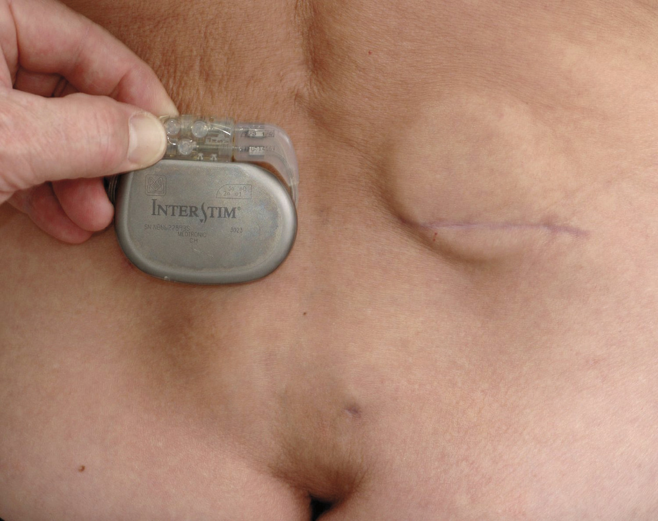 Après une phase de test avec un dispositif temporaire,6 en cas de réponse positive (réduction d’au moins 50 % du nombre de fuites) l’électrode est implantée de façon définitive en sous-cutané dans le quadrant supéro-externe de la fesse (fig. 3). Son mode d’action n’est pas complètement compris : la neuromodulation agirait sur la contraction sphinctérienne mais aussi sur la motricité colique, la sensibilité du rectum et sur la réponse corticale à la sensation de besoin. On obtient une amélioration durable chez 8 patients sur 10 implantés définitivement, soit environ 1 sujet sur 2 initialement éligible (en tenant compte des échecs de la phase test).6 Que proposer à l’autre moitié des malades ? à ce jour, seule la colostomie est une option validée. Bien que son impact psychologique soit important, elle peut améliorer la qualité de vie de certains malades.3