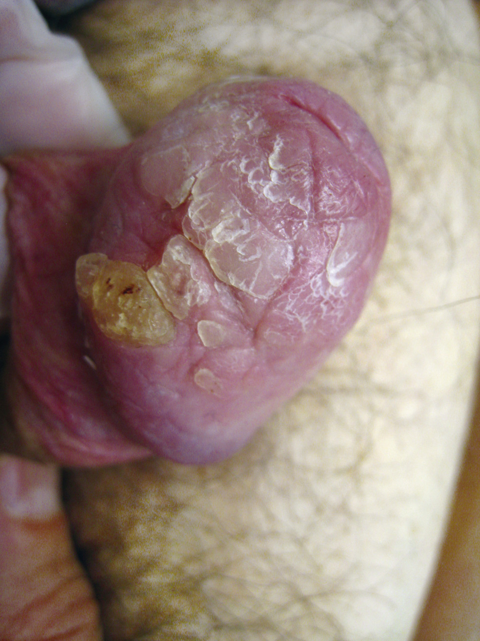 Asymptomatique dans 90 % des cas.Symptomatique : urétrites subaiguës ou balanoposthites avec prurit et méatite inconstants.