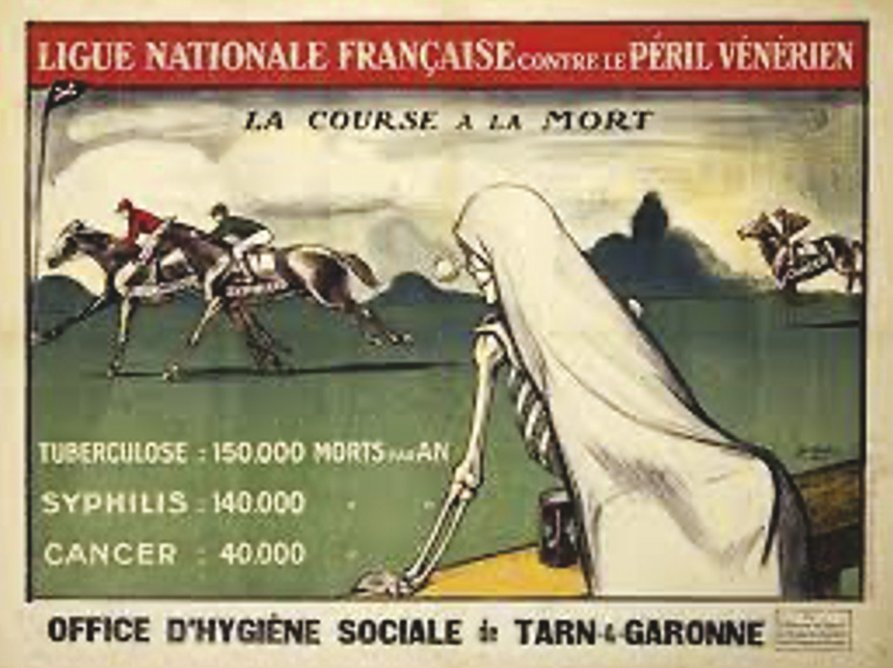 Créée en 1919 par les Prs Louis Queyrat, Édouard Jeanselme et Gaston Milian, la Ligue nationale française contre le péril vénérien, dont le premier président fut le Pr Jeanselme, s’est développée en installant des centres de dépistage et de traitement dans les grandes villes et en diffusant diverses affiches de prévention contre la syphilis, concernant sa mortalité (