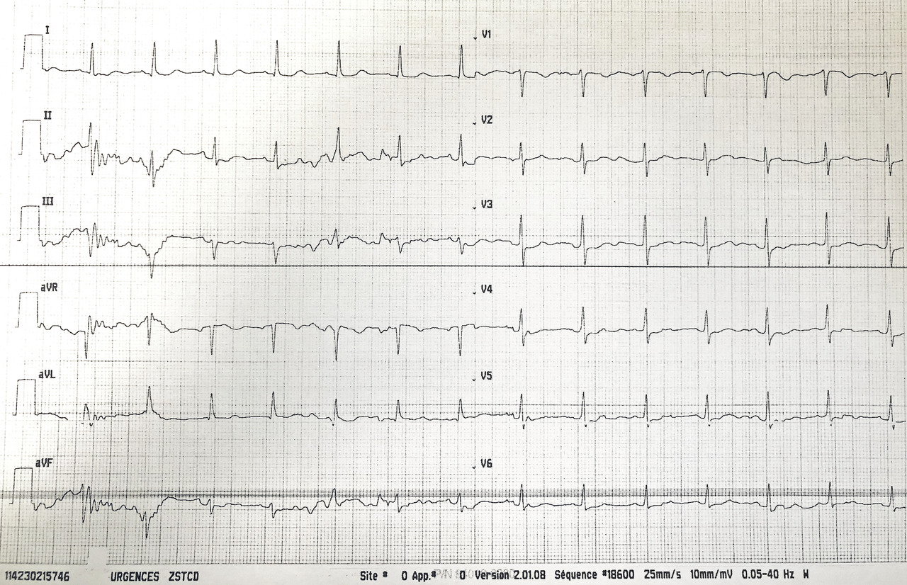 Les signes classiques à l’électrocardiogramme sont une inversion de l’onde T, un sous-décalage du segment ST et un allongement de l’intervalle QT (