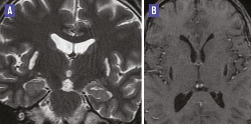 L’intoxication au méthanol est une affection sévère dont le pronostic vital et fonctionnel dépend de la rapidité de la prise en charge. De nombreuses intoxications ont été décrites lors de l’utilisation abusive de méthanol dans la fabrication d’alcool frelaté. Le méthanol induit des lésions cytotoxiques d’origine hypoxique par accumulation d’acide formique. Celles-ci prédominent au niveau des noyaux gris centraux, des voies optiques et de certaines régions périphériques sous-corticales de la substance blanche. Leur répartition bilatérale, voire symétrique, est fortement évocatrice. Ces atteintes peuvent toucher aussi le cervelet, l’hypothalamus.1 Au sein des noyaux gris centraux la nécrose putaminale est la lésion la plus fréquemment observée. Ces lésions sont par ailleurs évolutives dans le temps, avec au départ une composante œdémateuse qui laisse ensuite la place à une lésion de nécrose de liquéfaction de type pseudokystique. L’atteinte ophtalmologique survient dans un second temps, avec œdème papillaire, atteinte de la vision des couleurs et baisse de l’acuité visuelle en rapport avec une névrite optique.2