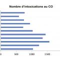 Le CO est responsable de 136 décès sur ces 10 ans. Il reste la première cause de décès par intoxication. Sur ces 136 décès, 83 (61 %) sont survenus à domicile ou avant l’admission à l’hôpital. Ce fait explique que les statistiques de mortalité hospitalière ne rendent que mal compte de la mortalité provoquée par le CO. L’origine des décès était accidentelle dans la grande majorité des cas, 76 sur 83 (92 %) et 54 (65 %) avaient comme origine un moyen de chauffage ou chauffe-eau défectueux, 23 (28 %) un incendie et 6 (7 %) seulement une origine suicidaire par inhalation de gaz d’échappement de voiture. Ces résultats sont très différents de ceux d’Amérique du Nord où l’origine des décès est en premier lieu le suicide, puis l’incendie.