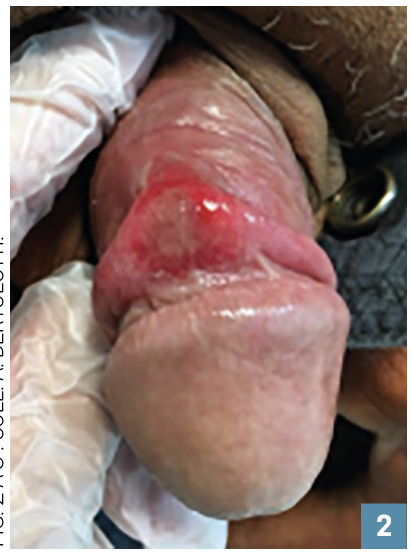 Toute ulcération muqueuse doit faire suspecter un chancre même si la lésion est atypique (aspect classique : circonscrite, unique, à fond propre, indolore et indurée ;fig. 2 et 3 ).