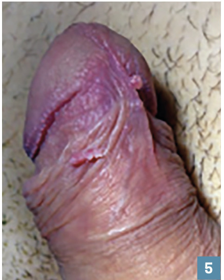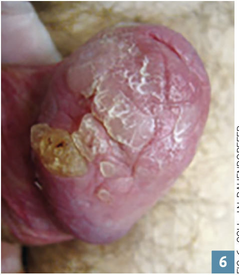Diagnostic : clinique pour le condylome (fig. 4 et 5 ), anatomopathologique pour les néoplasies intra-épithéliales et les carcinomes (fig. 6 ).