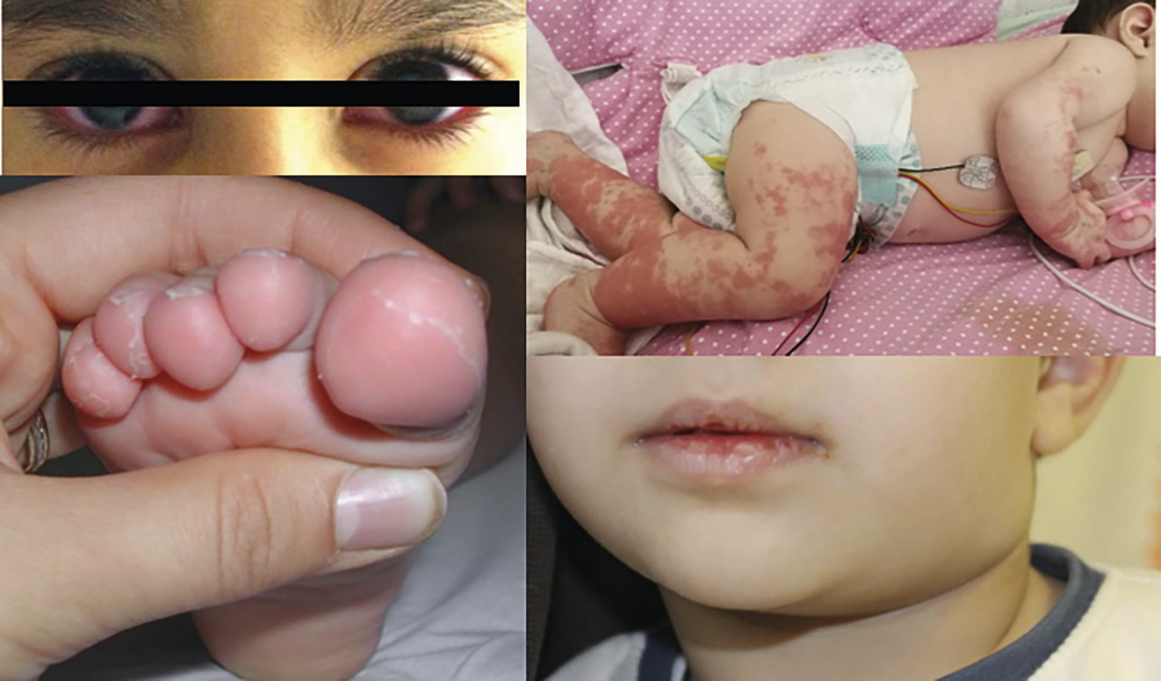 Infections virales (rougeole, EBV, adénovirus) : souvent, il existe moins de signes systémiques et pas d’anomalies des extrémités.