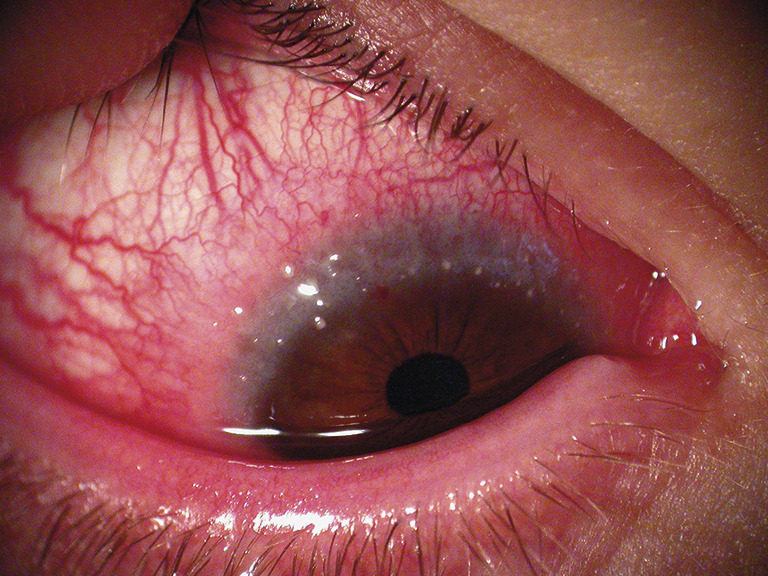 Les dysfonctionnements méibomiens (encore appelés rosacée oculaire) peuvent donner de vrais tableaux de kératoconjonctivites. Cependant, l’atteinte est souvent unilatérale.6 Des antécédents de chalazions sont retrouvés. Les kératites ponctuées épithéliales superficielles observées siègent le plus souvent sur la partie basse de la cornée, tout comme la néovascularisation souvent observée. La conjonctive bulbaire est le plus souvent le siège de phlyctènes et le versant tarsal celui de follicules.