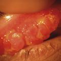 La kératoconjonctivite vernale, en particulier dans sa forme rétro-tarsale, est à différencier de la kératoconjonctivite atopique.5 Cette dernière touche l’adulte et associe des lésions cutanées d’eczéma à des papilles géantes pas toujours constantes. On retrouve une conjonctivite souvent fibrosante. Les kératites ponctuées épithéliales superficielles diffuses et les ulcères sont fréquents, compliquant la pathologie de néovascularisation cornéenne sévère. Cependant certaines kératoconjonctivites vernales peuvent survenir chez des enfants eczémateux et atopiques, évoluant pour certaines dans la forme adulte de la maladie.