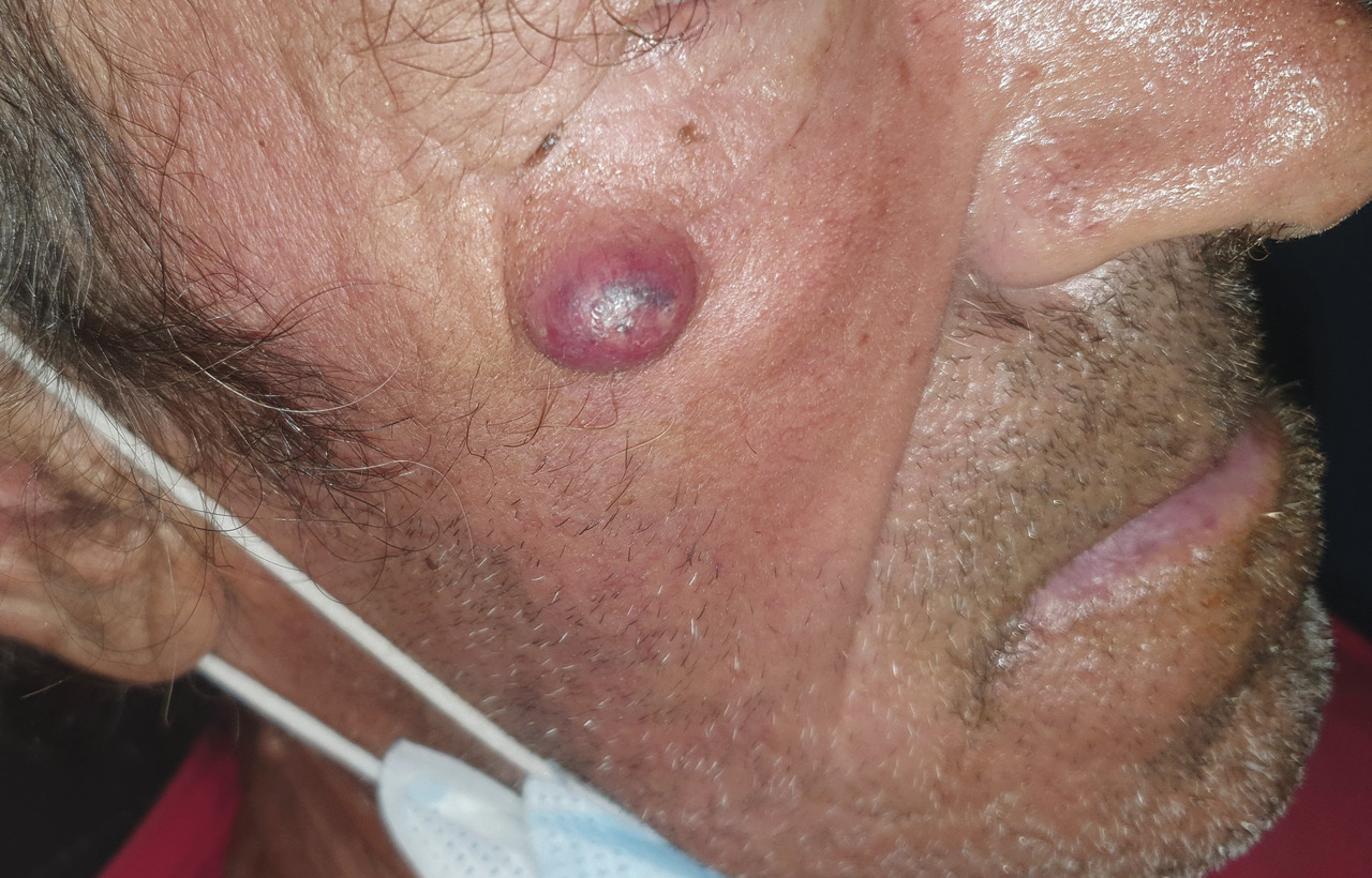 Antoine, 61 ans, consulte pour une tuméfaction apparue depuis plusieurs années près de l’orbite droite (figure ). Il est inquiet car sa taille a augmenté depuis une semaine.