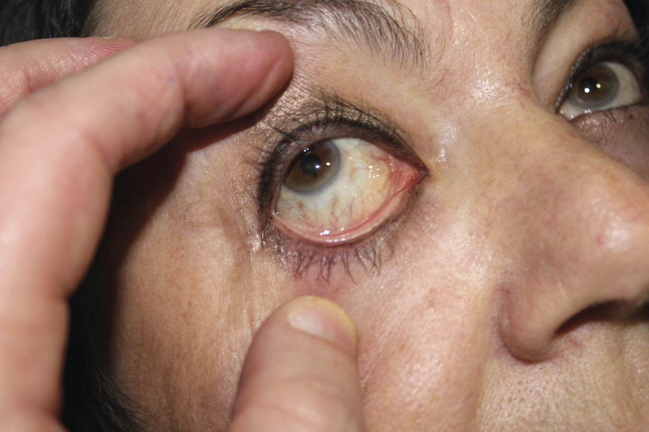 Michèle, 52 ans, consulte pour l’apparition d’une « cloque » au niveau de la conjonctive de l’œil droit, jaune, ayant l’aspect d’un lobule graisseux, proche de la caroncule, accompagnée d’une sensation de grain de sable. Notion de traumatisme oculaire (branche d’arbre).