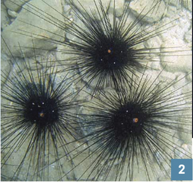 Appartenant aux échinodermes (comme les holothuries ou concombres de mer), les oursins sont dangereux en raison de leurs épines acérées et cassantes.