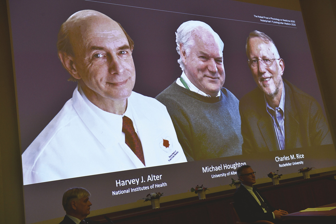 Le prix Nobel de médecine 2020 a été attribué aux Drs Harvey Alter, Michael Houghton et Charles Rice le 5 octobre 2020 pour leurs contributions décisives à la découverte du virus de l’hépatite C.