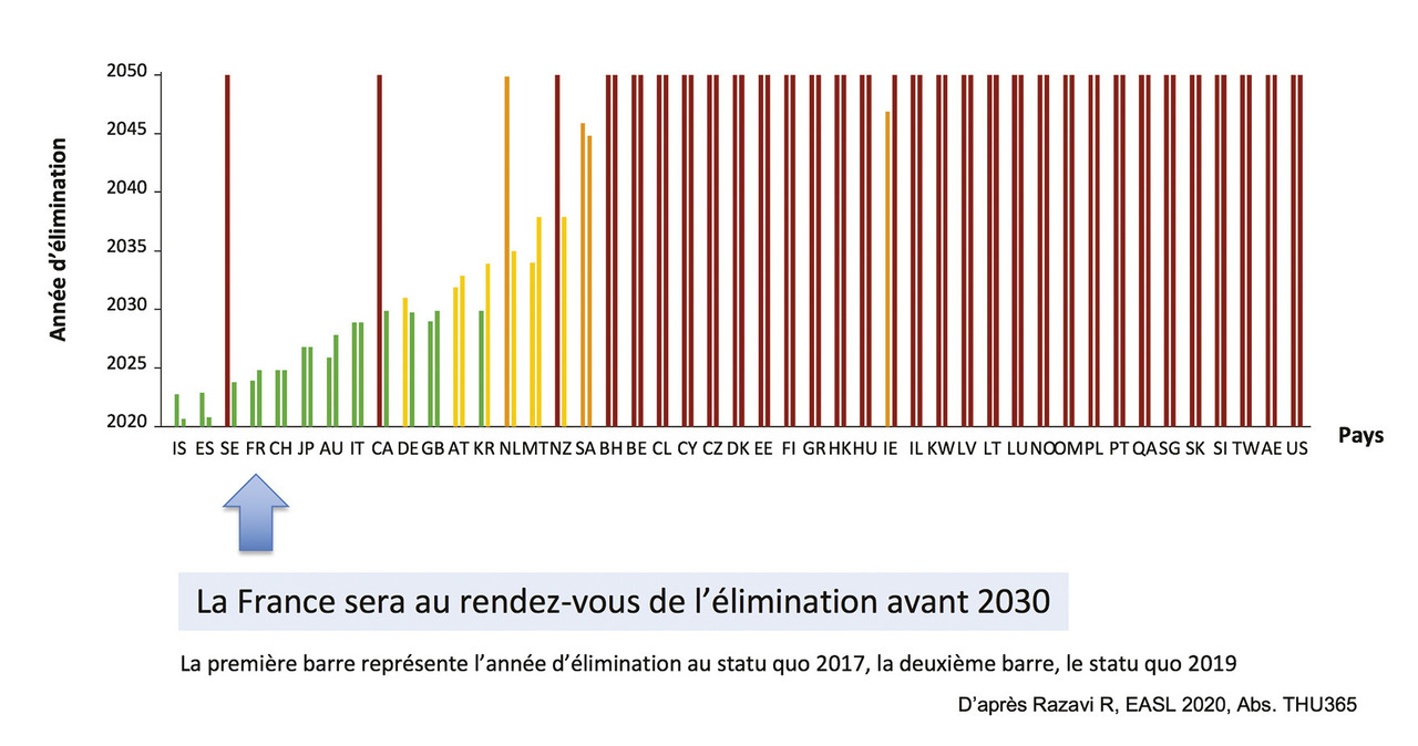 Grâce aux combinaisons efficaces d’antiviraux, des politiques nationales d’élimination du VHC sont mises en place dans de nombreux pays, et environ 10 pays industrialisés seront au rendez-vous en 2030 du plan d’élimination des hépatites de l’Organisation mondiale de la santé (OMS).