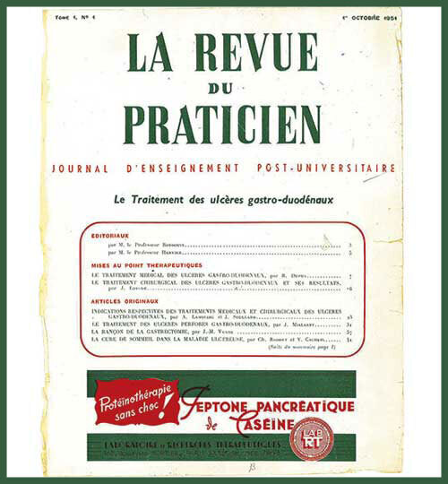 Le 1er octobre 1951, les éditions Jean-Baptiste Baillière publiaient le premier numéro de La Revue du Praticien, fruit de la fusion de deux périodiques : Le Journal des Praticiens et Paris Médical. Le but était de créer une grande revue francophone d’enseignement post-universitaire dont la caractéristique principale résidait dans la publication de monographies ou de dossiers thématiques, rédigés par les meilleurs auteurs, sous l’autorité d’un expert reconnu. Une politique éditoriale qui est toujours la même aujourd’hui... Retrouvez, à l’occasion de nos 70 ans, des extraits de la toute première monographie !