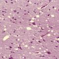 En raison de la durée d’incubation de la maladie, l’impact de la modification du procédé de fabrication des farines de viande et d’os ne devint cliniquement décelable qu’en 1986. Le tableau clinique se caractérisa alors par l’apparition de troubles comportementaux, de la locomotion et de la sensibilité, et par une altération importante de l’état général. L’examen post mortem des encéphales révéla des lésions spongiformes (fig. 2) ou la présence de la protéine anormale par Western Blot.