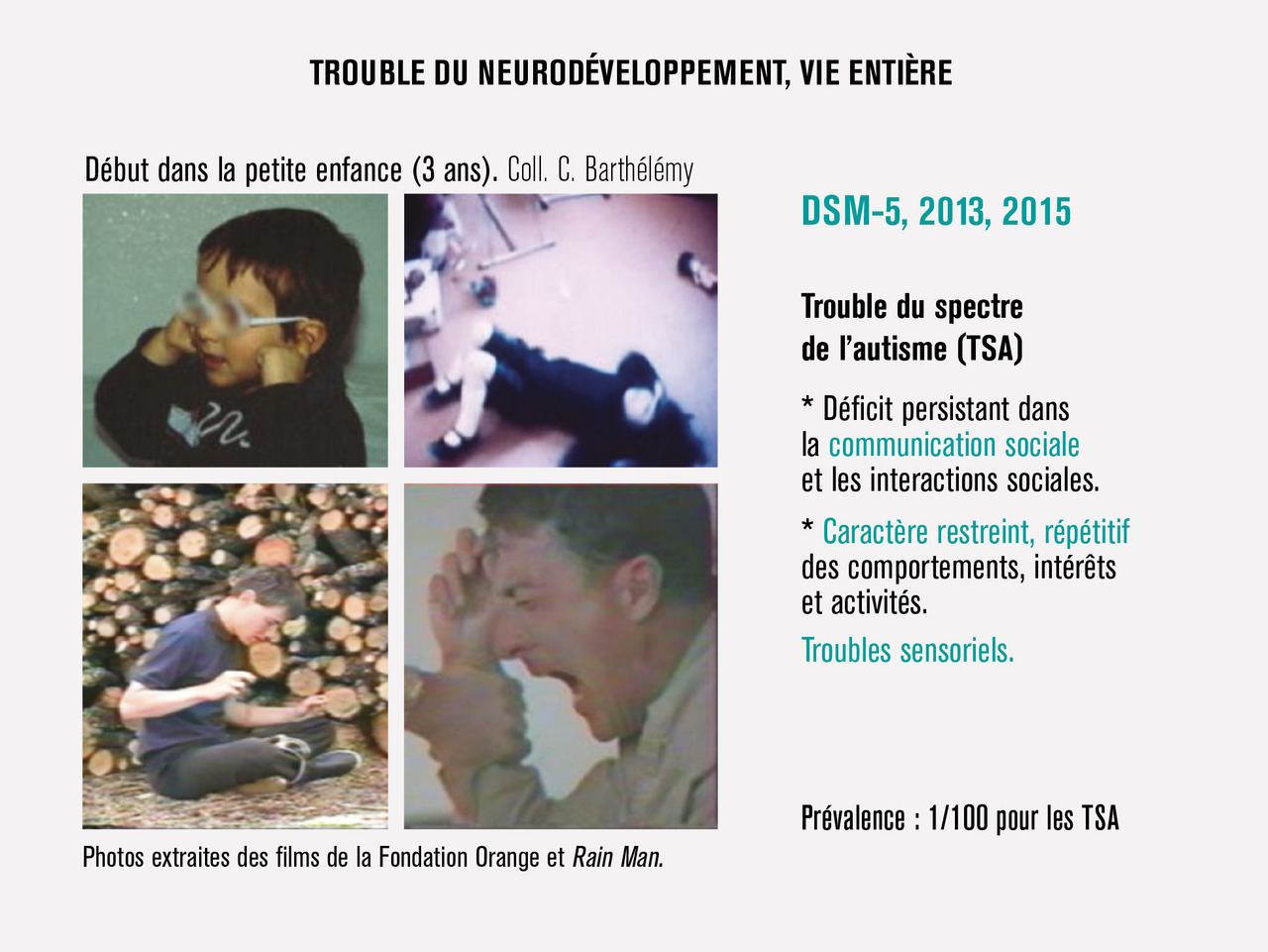 Trois quarts de siècle ont passé, et pourtant l’autisme d’aujourd’hui est bien celui que décrivaient Kanner (1943) et Asperger (1944).1, 2 Les particularités comportementales apparaissant classiquement avant 3 ans peuvent être regroupées en deux dimensions :