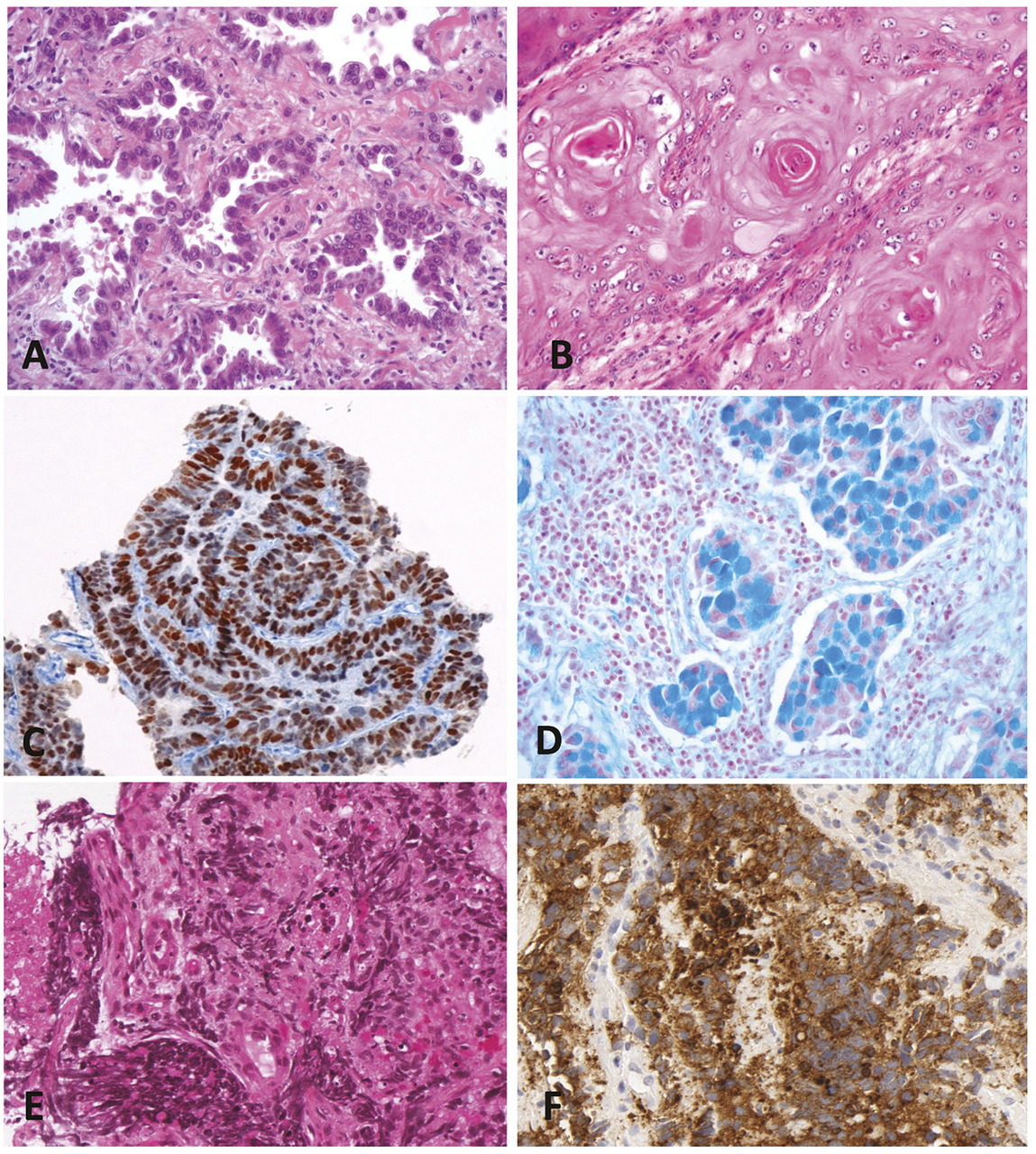 Le diagnostic des cancers du poumon repose sur l’examen anatomopathologique. Le pathologiste a un rôle primordial dans leur prise en charge du fait de la complexification de l’arsenal thérapeutique des stades avancés (chimiothérapies cytotoxiques, thérapies ciblées, immunothérapie) qui nécessite l’identification précise des différents sous-types histologiques, en utilisant une terminologie conforme aux recommandations de la classification de l’Organisation mondiale de la santé.1 De plus, le pathologiste est dans une problématique d’épargne tissulaire, le diagnostic se faisant le plus souvent sur des « petits prélèvements », devant permettre à la fois le diagnostic et, si nécessaire, la caractérisation moléculaire.