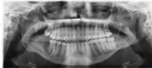 Cette femme de 26 ans consultait pour des douleurs récidivantes au niveau des dents de sagesse. Elle avait comme antécédents un asthme et une néphrectomie du rein droit en raison d’une dysplasie. Sa consommation tabagique était estimée à 6 paquets-année. Le panoramique dentaire (fig. 1 ) montrait quatre images radioclaires entourant les dents de sagesse. La patiente était alors adressée dans le service de chirurgie où un Cone Beam (fig. 2 et 3 ) permettait d’évaluer la taille des lésions kystiques ainsi que leurs rapports avec les structures anatomiques voisines. L’avulsion des dents de sagesse et l’énucléation des kystes étaient réalisées. L’examen anatomopathologique des lésions notait une paroi kystique bordée par un épithélium malpighien ortho- ou parakératosique avec une hyperplasie des couches basales compatible avec des kératokystes bénins odontogènes.