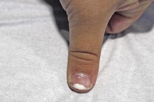 Timothée, 5 ans, consulte avec sa mère car une coloration blanche est apparue au niveau d’un de ses doigts. Il vient d’effectuer un séjour d’une semaine avec le groupe scolaire, pendant lequel il a pratiqué différents sports (escalade, football, course).