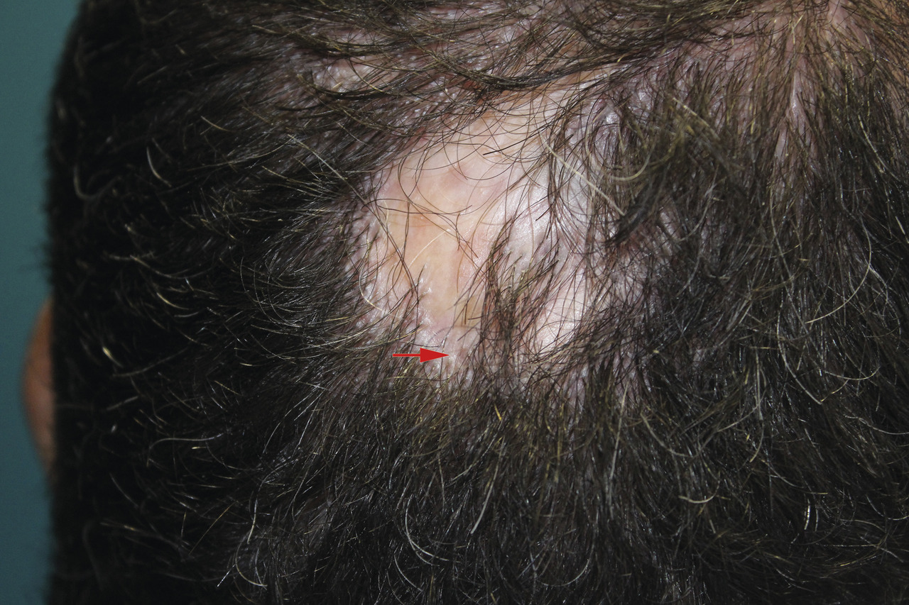 Cette pathologie d’étiologie inconnue touche surtout la femme (2 pour 1 homme) de 40 à 60 ans. Les plaques uniques ou multiples d’alopécie cicatricielle sans orifices folliculaires sont typiques. L’évolution est chronique, indolente, centrifuge, par poussées.