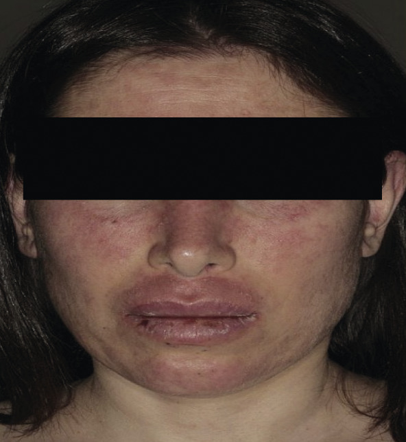 L’atteinte de l’arête nasale, le respect du menton, l’absence de papulo-pustule ou de flush et l’absence de télangiectasies plaident en faveur d’un lupus aigu. Il en est de même des taux élevés des anticorps antinucléaires (AAN) et anti-ADN natifs.