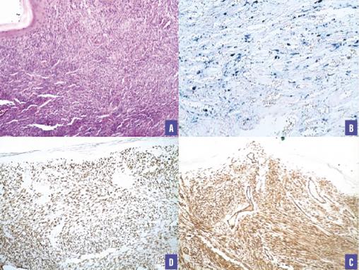 Le diagnostic de certitude est obtenu par l’examen histologique mettant en évidence une double prolifération de cellules fusiformes et de cellules endothéliales à laquelle s’associent des stigmates d’extravasation sanguine et un infiltrat inflammatoire non spécifique,8 avec, à l’immunohistochimie (IHC), un marquage par les anticorps CD34 et CD31. La mise en évidence d’un marquage par un anticorps anti-HHV8 des cellules fusiformes ainsi que des cellules endothéliales des vaisseaux anormaux (marquage nucléaire) permet de confirmer le diagnostic de manière formelle.1 La réplication virale HHV-8 dans le sang n’est pas toujours positive, elle peut être faible ou négative.6