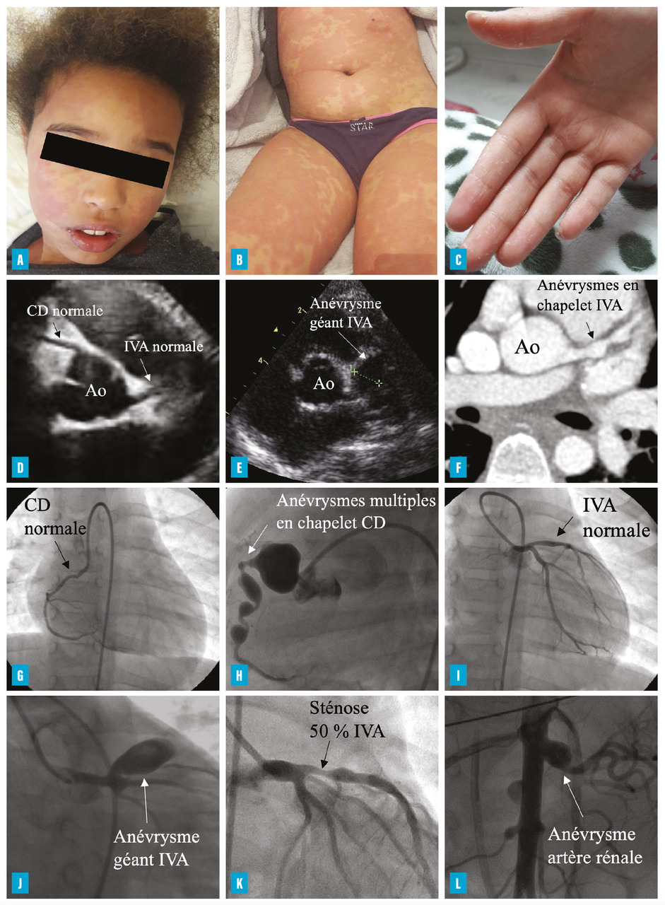 Pour les enfants avec anévrisme coronaire, la réalisation d’une imagerie coronarienne est préconisée à un an d’évolution de la maladie pour faire un bilan lésionnel et définir le type de surveillance et de traitement (fig. 1F-L ) :6