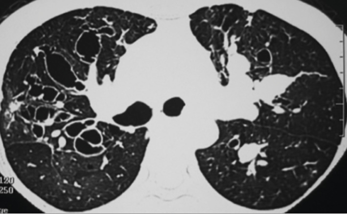 Elle fait partie des affections secondaires à une réaction d’hypersensibilité envers la moisissure Aspergillus fumigatus impliquant une réponse immunitaire via les cellules Th2 et les IgE, IgG et IgA.2 Elle survient essentiellement chez l’asthmatique (3 à 13 %) et les patients atteints de mucoviscidose (2 à 15 %) mais également sur des terrains de BPCO.3 Les exacerbations émaillant l’évolution peuvent menacer le pronostic vital et générer des lésions de fibrose pulmonaire irréversibles ainsi que des bronchectasies.2 Leur traitement précoce vise à éviter ces séquelles et une hypertension artérielle pulmonaire.2