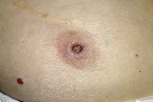 Pauline, 78 ans, consulte pour la rétraction d’un mamelon qu’elle a depuis l’adolescence. Elle craint une transformation maligne.