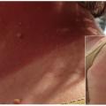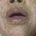 La réaction photoallergique disparaît lentement à l’arrêt du médicament, mais peut parfois persister. La complication la plus fréquente est l’impétigo (fig. 3) ; une surinfection par le virus de l’herpès (syndrome de Kaposi-Juliusberg) est également possible.
