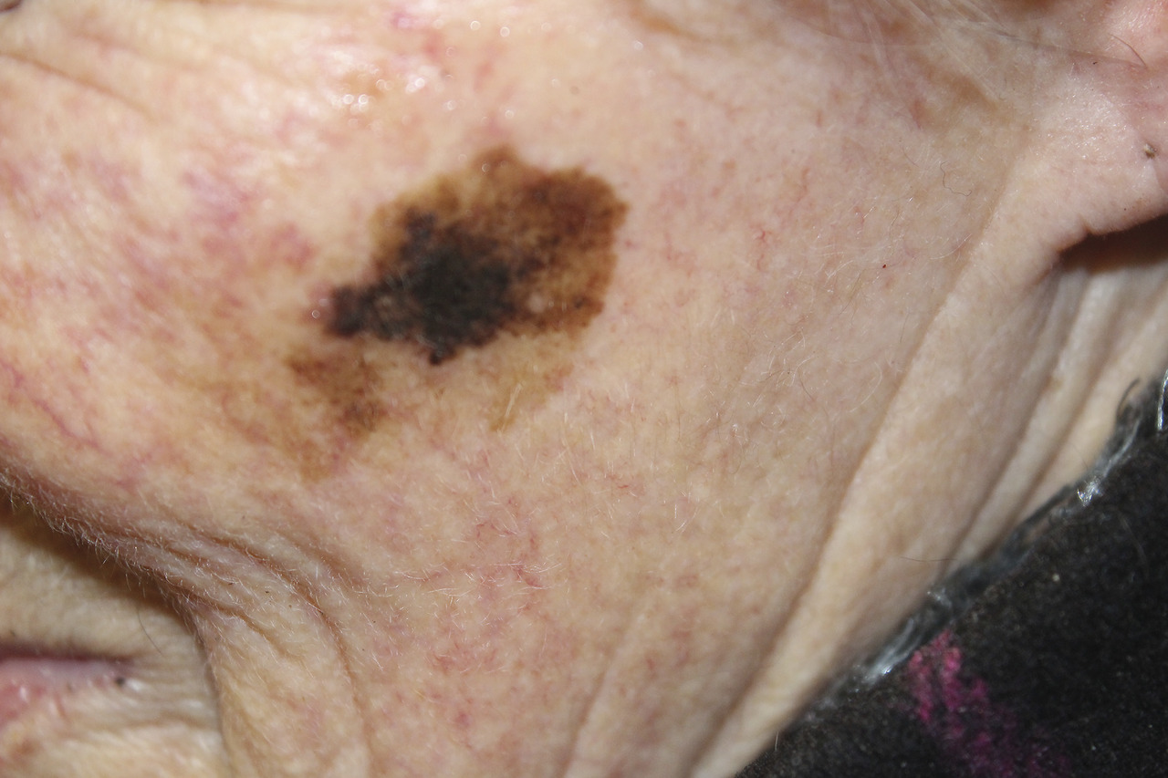 À l’examen de Marcelle, 92 ans, nous découvrons un placard pigmenté hétérogène au niveau de la face.