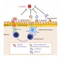 La dermatite atopique, ou eczéma, associe des anomalies structurelles de la barrière cutanée (incluant le déficit en filaggrine) et une réaction inflammatoire de type allergique. Le microbiote lésionnel des lésions de dermatite atopique est caractérisé par une perte de la diversité bactérienne avec une prédominance de Staphylococcus aureus. Cette dominance précède les poussées de la maladie et est d’autant plus importante que les lésions sont sévères. Contrairement à ce qui est observé dans l’acné, les souches de S. aureus associées à la dermatite atopique appartiennent à divers complexes clonaux, chaque patient ayant sa propre souche. Des études expérimentales chez la souris ont montré que ces souches induisent une réponse inflammatoire de type allergique,8 suggérant qu’elles participent à la physiopathologie de la maladie.