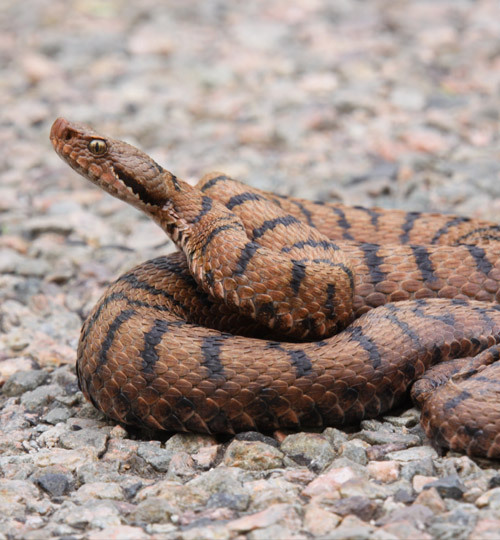 On dénombre environ 200 envenimations par an dues à la vipère aspic (Vipera aspic) ou péliade (Vipera berus), qui mesurent de 60 à 80 centimètres et qui sont des espèces protégées depuis février 2021. Mais, en fait, une fois sur deux, il n’y a pas d’injection de venin, la « morsure sèche » ne provoquant alors qu’une pathologie locale : douleur au point de morsure, réaction inflammatoire localisée. On dénombre environ 250 morsures par an (dont 61 % dues à des vipères et 8 % dues à des couleuvres), atteignant les enfants et les adultes, aboutissant à 1 à 5 décès annuels.