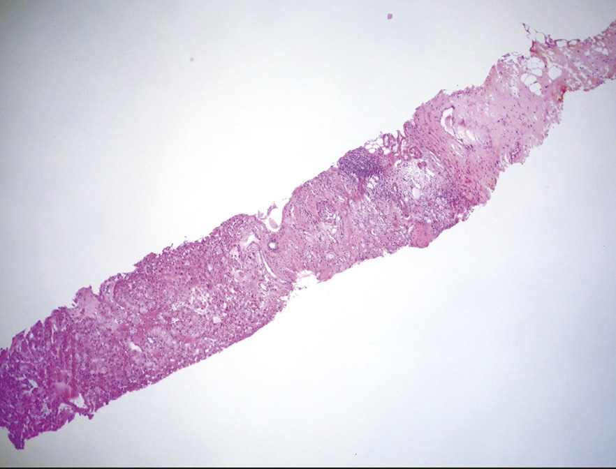 Il a longtemps été reproché à la biopsie percutanée des masses rénales une faible performance. Actuellement il est reconnu que la biopsie standardisée a une performance, une sensibilité (99 %) et une spécificité (99 %) élevées pour le diagnostic de malignité (fig. 2).1, 2La biopsie a une performance de 90 % pour le sous-type histologique, et de plus de 95 % pour les tumeurs solides de moins de 4 cm. Pour la détermination du grade tumoral la performance de la biopsie est de 43-93 %. Pour les tumeurs de moins de 4 cm, la biopsie peut déterminer un faible ou un haut grade avec une fiabilité de plus de 85 %.1, 5 La détermination du grade (faible grade, par exemple) peut influencer la décision d’une surveillance d’une petite tumeur, d’une tumorectomie chez un patient insuffisant rénal, d’un traitement ablatif chez un patient à risque opératoire. Le taux de biopsies non significatives (échec, biopsie blanche) avec la technique de biopsie actuelle est de moins de 10 %.5 Dans ces cas, une seconde biopsie peut être proposée et réalisée en fonction du contexte clinique et radiologique, avec une rentabilité de plus de 80 %.5