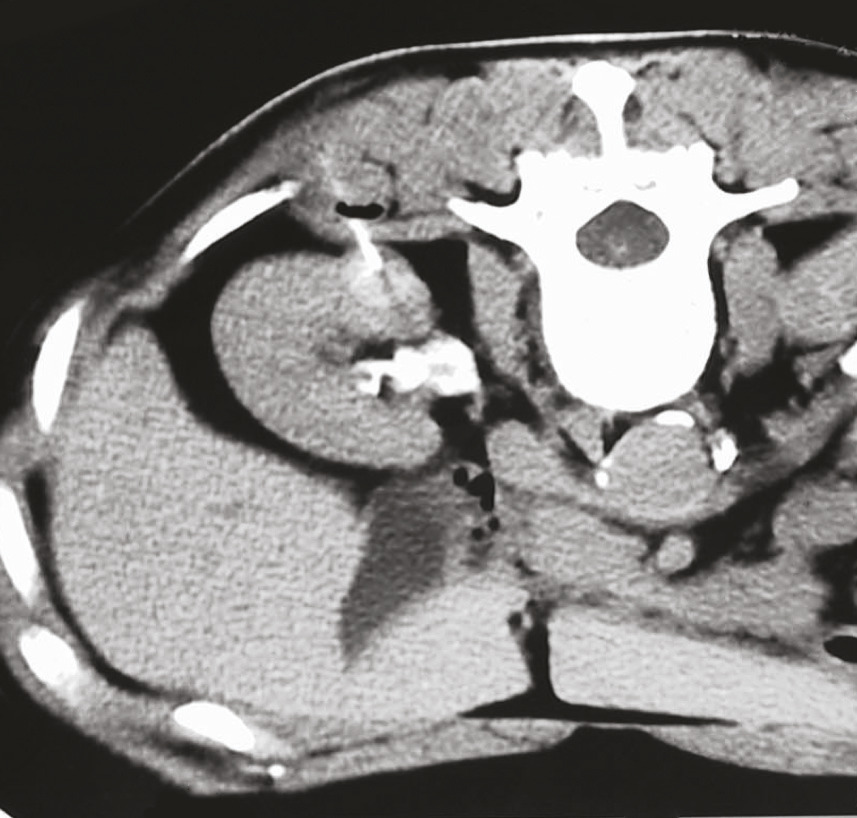 La biopsie des masses rénales est actuellement bien standardisée et codifiée. Elle est généralement réalisée par un radiologue, sous anesthésie locale, en externe ou en ambulatoire. Le guidage classique est un guidage tomodensitométrique (fig. 1). Certaines masses rénales faciles d’accès peuvent être biopsiées sous guidage échographique. Au moins deux prélèvements sont réalisés en évitant les zones de nécrose. Pour les tumeurs avec plusieurs contingents radiologiques, les contingents radiologiques différents doivent être prélevés. Une aiguille fine coaxiale (18 gauges) est utilisée pour protéger le trajet de ponction d’une contamination tumorale.3 Il est recommandé que le patient soit à jeun pour prévenir les nausées et vomissements réflexes éventuels. Un contrôle tomodensitométrique post-biopsie est réalisé avant le départ du patient pour vérifier l’absence de saignement rénal. Un rendez-vous de consultation est programmé avec l’urologue référent pour la communication du diagnostic et la décision de la réunion de concertation pluridisciplinaire d’oncologie.