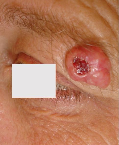 Les carcinomes siègent essentiellement sur les zones photo--exposées (visage, cuir chevelu, oreilles, dos des mains, avant-bras, tibias et décolleté chez les femmes).