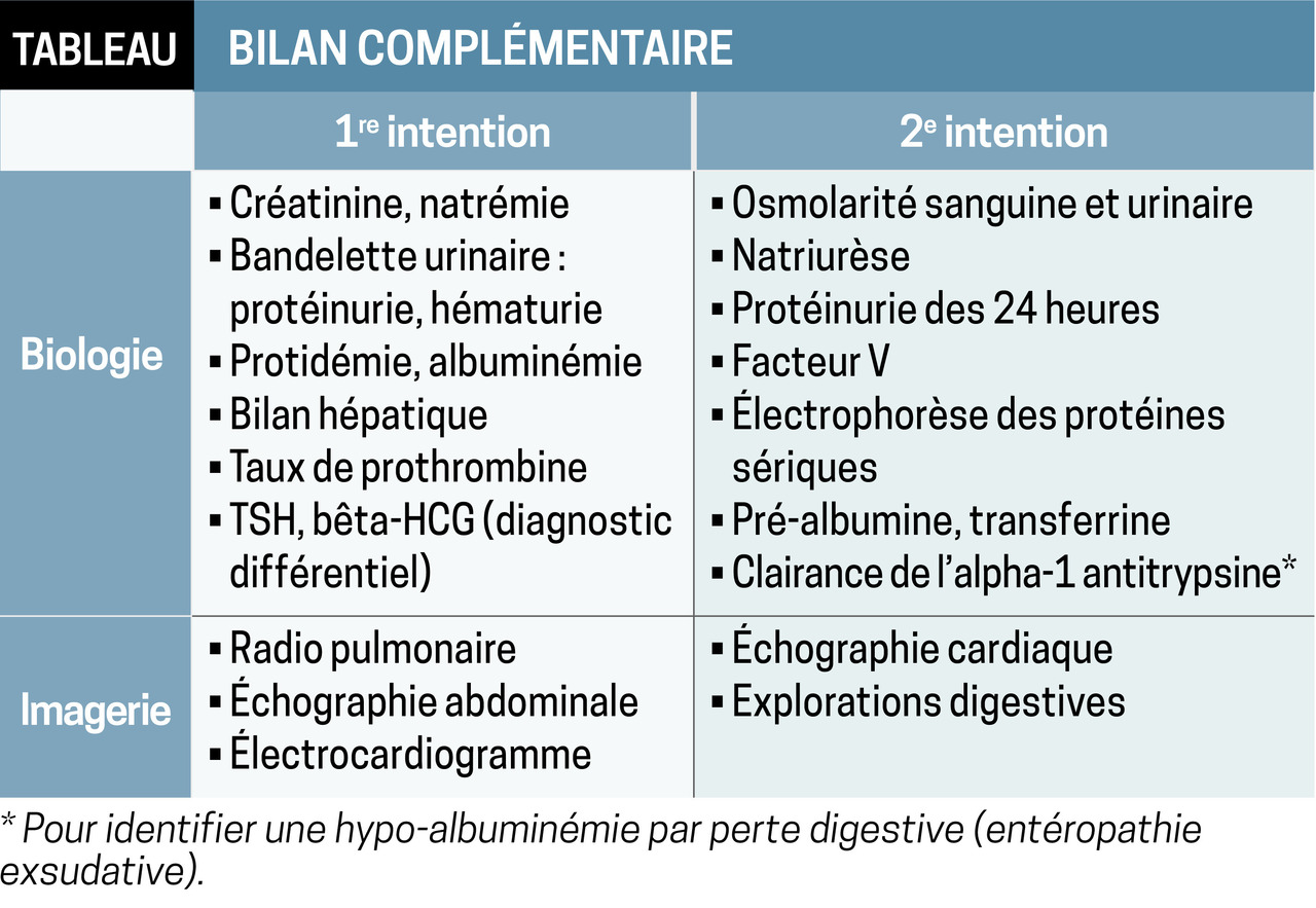 Rétention hydrosodée : d’origine cardiaque, rénale ou hépatique (encadré 1).