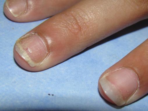 – une trachyonychie : rugosité secondaire à une perte de la transparence de l’ongle.