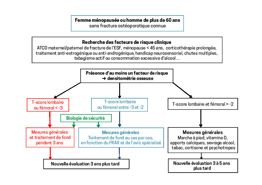 – femme ménopausée vers 60-65 ans , avec un (ou plusieurs) facteur(s) de risque clinique (cf. supra) ;