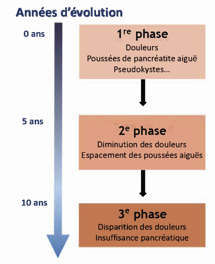 Poussées de pancréatite aiguë : fréquentes au début (fig. 1).